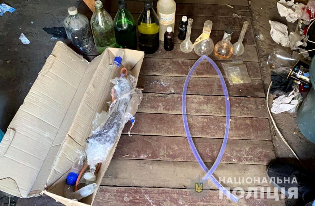 У результаті обшуків правоохоронці виявили та вилучили лабораторне обладнання (12 колб, холодильник, скляні поверхні, електронні ваги із залишками амфетаміну), десять банківських карток, дев’ять мобільних телефонів із наявною перепискою та фотографіями закладок, 18 сім-карт, 30 рослин конопель, три кілограми канабісу, півкілограма амфетаміну, кілограм макової соломки, сім літрів прекурсорів, 600 грамів нітропропену, чотири одиниці вогнепальної зброї та 20 набоїв.