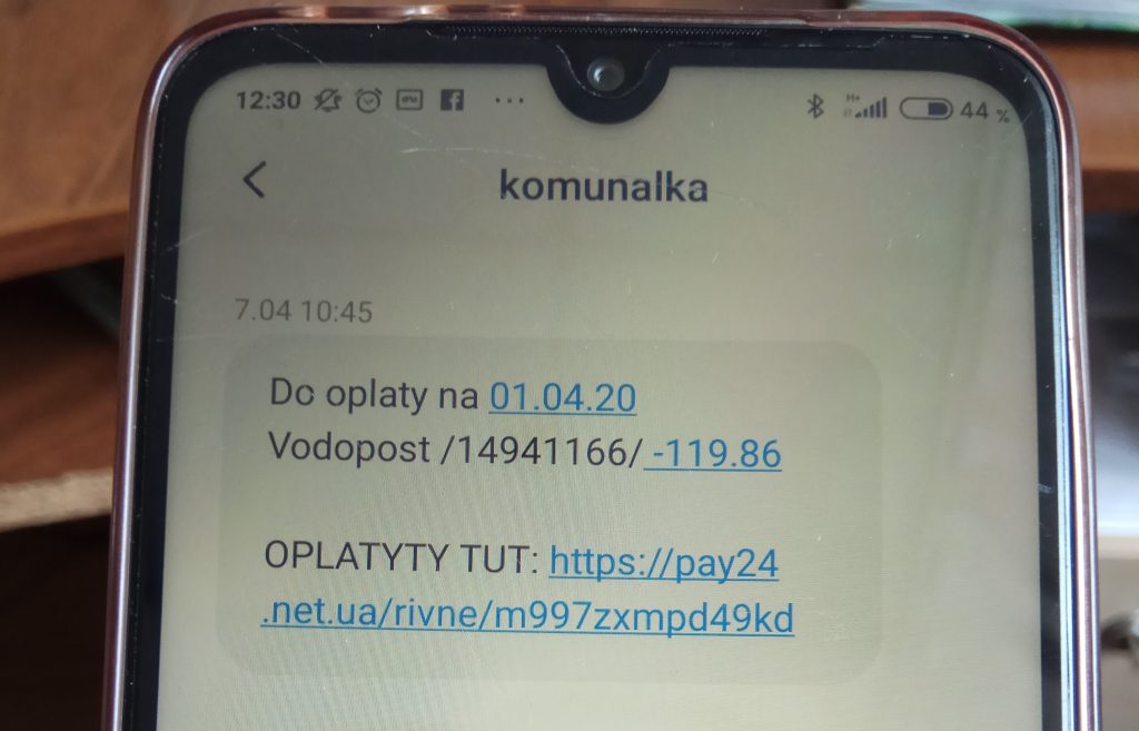 «Ми і наші знайомі почали отримувати СМС-повідомлення від абонента «Комуналка». Він просить заплатити за спожиту воду. Причому люди кажуть, що цифри, вказані в повідомленнях, не завжди відповідають дійсності. Приміром, просять заплатити за воду 5 гривень, хоч насправді боргу людина не має. Або в повідомленні вказана сума з мінусом, хоч переплати в людини теж немає. Поясніть, чи це новий сервіс, який замінить паперові квитанції? Як тепер правильно платити за воду, і як бути, якщо людина не користується тією платіжною системою, яка пропонується в СМС», – йдеться в одному з листів, що отримала наша редакція.