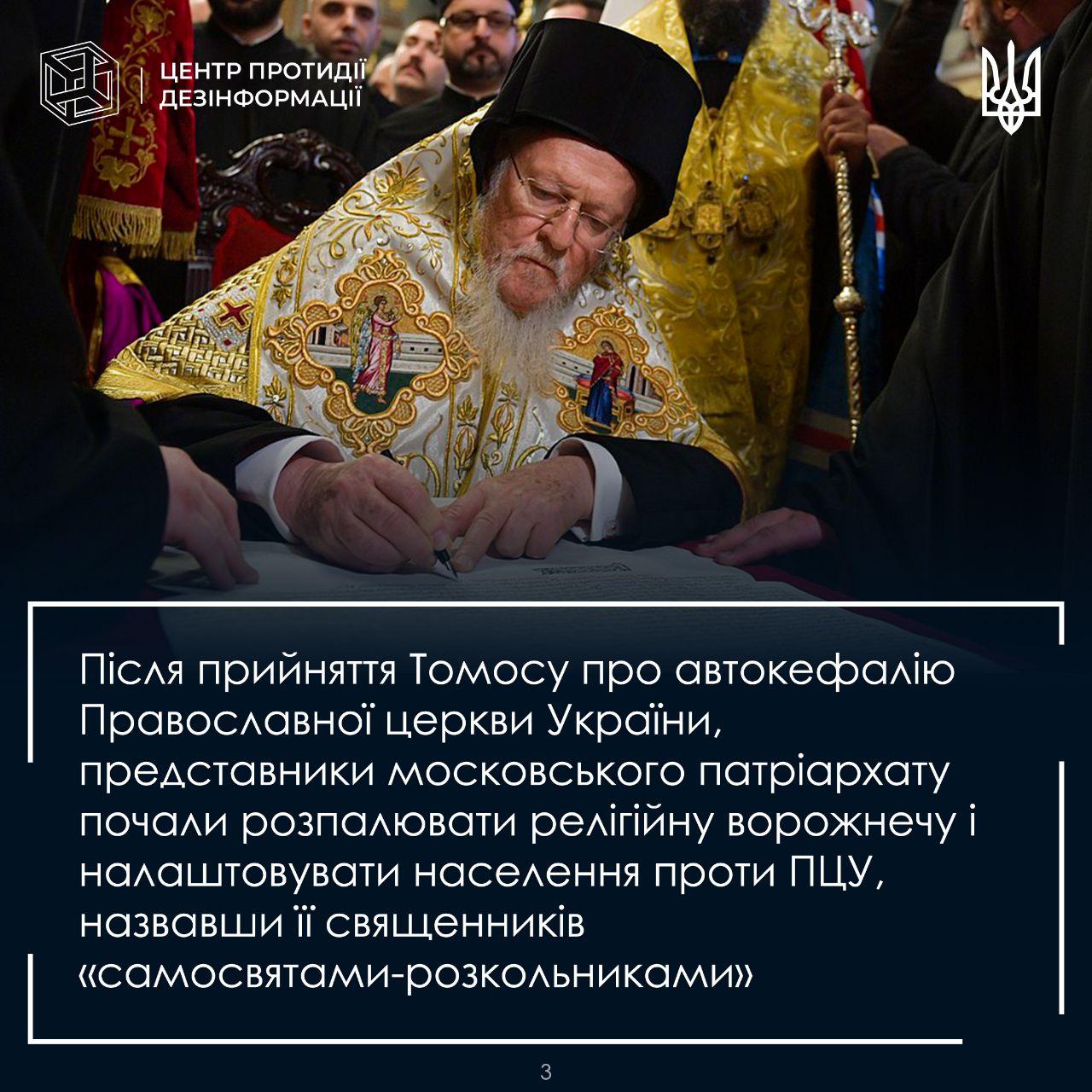 Після прийняття Томосу про автокефалію Православної церкви України, представники московського патріархату почали розпалювати релігійну ворожнечу і налаштовувати населення проти ПЦУ, назвавши її священників «самосвятами-розкольниками».