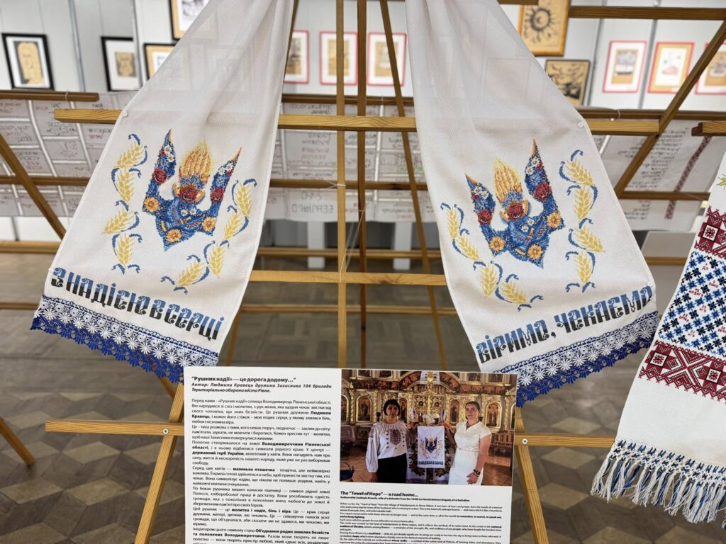 У Рівненському обласному краєзнавчому музеї відкрилася експозиція з п’яти унікальних рушників, створених рідними військовополонених та зниклих безвісти українських захисників у межах всеукраїнської акції «Рушник надії».