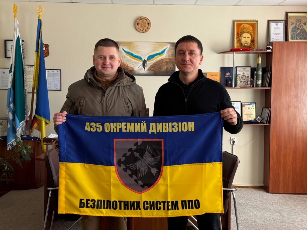 Крім того, після зустрічі музей у фойє міської ради поповнився новим експонатом – бойовим стягом, який передали військові на знак вдячності.