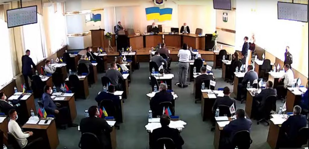 Міські обранці знову зібралися в сесійній залі на чергове засідання Рівнеради. Як і попереднього разу їх розсадили на відстанні один від одного.
