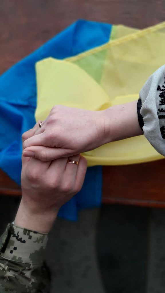 “Наша третя нова українська родина за час війни. Заступник командира роти добровольчого формування ТО Роман і волонтерка волонтерського штабу ГО “Ресурсний центр підтримки ОСББ Рівненщини” Яна відтепер Карнасевичі. Щиро вітаємо молодят! Слава Україні! Слава новій родині!”
