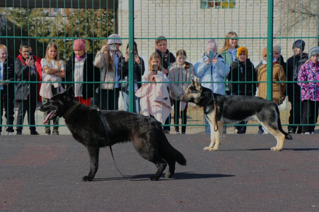 Неабиякий захват у школярів викликали німецькі вівчарки Една та Джек. Една, ще молода та енергійна, лише готується до навчань із пошукових дій, а ось Джек – справжній ветеран, чия спеціалізація – затримання порушників. Діти з цікавістю спостерігали за вправними діями собак та їхньою взаємодією з кінологами.