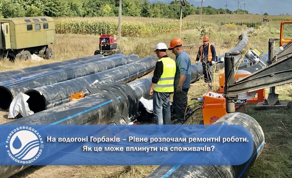 Нагадаємо, що підготовчі роботи працівники Рівнеоблводоканалу почали 8 вересня. — Заміна здійснюється з метою забезпечення споживачів надійним та безпребійним водопостачанням. На сьогодні, розпочато роботи із заміни понад 600 метрів сталевих труб на Горбаківському водогоні, це – перша з трьох таких ділянок.
