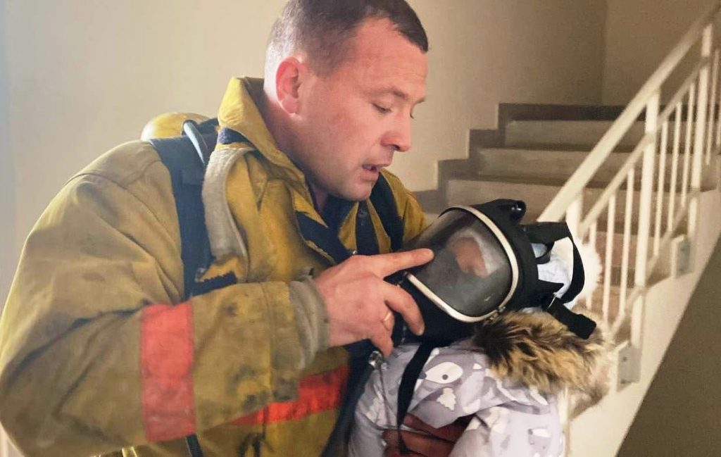 Серед інших хлопці терміново евакуйовували із задимленої висотки малюка.