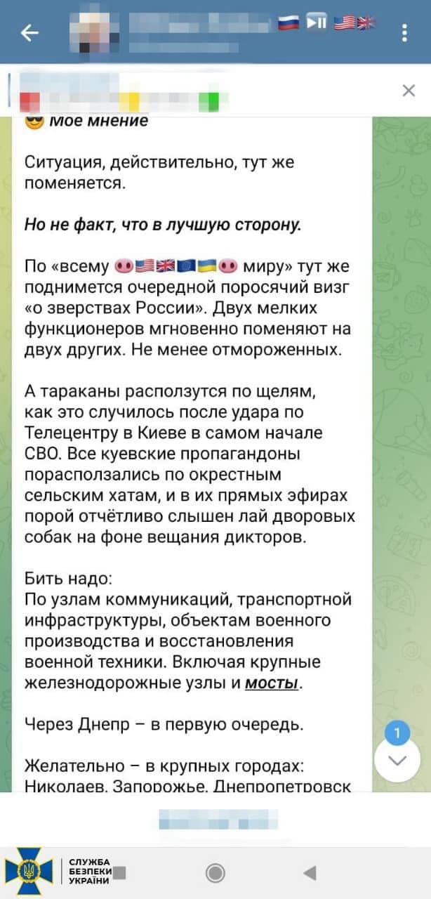 Отримані координати зловмисник передавав ворогу через власний тг-канал, де також оприлюднював дописи на підтримку рашистських загарбників та виправдовував їхні злочини.