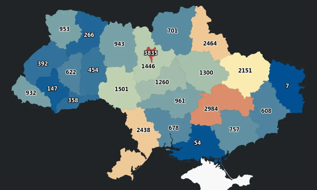 📍 Найбільше справ зафіксували у столиці — 3 835 проваджень. У трійці “лідерів” також: