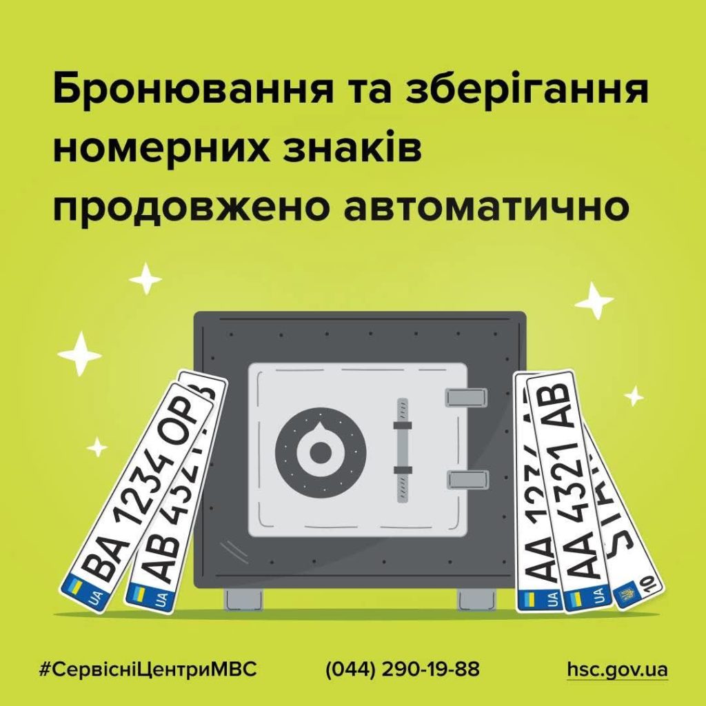 Термін бронювання та зберігання номерних знаків на період збою в роботі реєстрів продовжено автоматично.