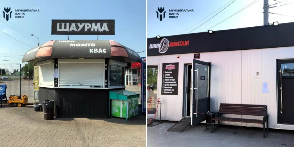 Одну використовували як шиномонтаж, а іншу для продажу шаурми. В обох випадках, підприємницька діяльність здійснювалась без паспортів прив’язки тимчасової споруди.