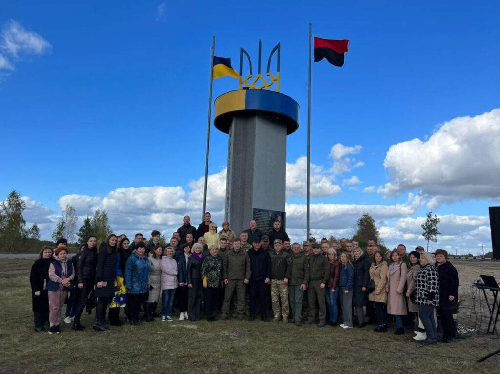 На стовпах поруч із меморіалом два стяги: синьо-жовтий та повстанський. Адже Дубровиччина – це славетний партизанський край. Тож і сьогодні громада має один із найбільших показників мобілізації населення до лав ЗСУ. Тут живуть справжні чоловіки та патріоти.
