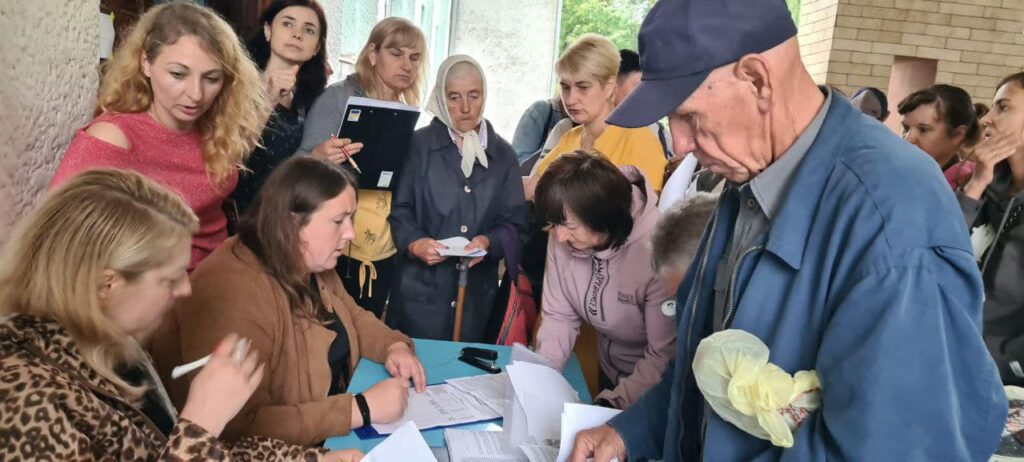 Загалом продуктові набори отримали 240 внутрішньо переміщених осіб. Процес видачі продуктових наборів та збір ВПО організували працівники КЗ “Територіальний центр соціальних послуг” Гощанської селищної ради.