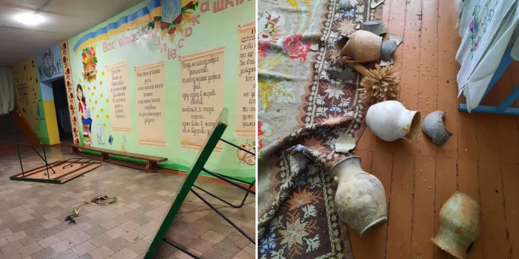 З повідомлення Корецької міської ради випливає, що понищені були нові пластикові двері, стіна, дбайливо розмальована вчителькою, старовинні речі, які чиясь родина віддала до школи, побиті шибки.