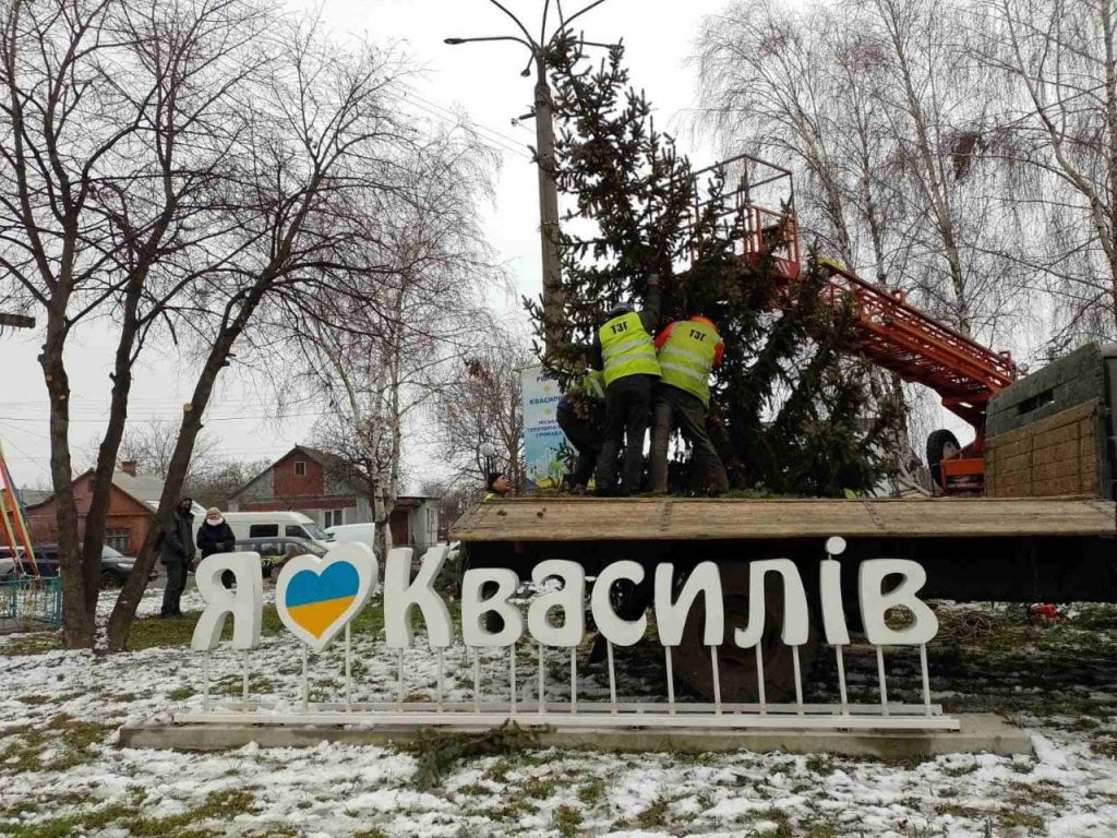Сьогодні, 6 грудня у центрі седища Квасилів, що на Рівненщині, почали встановлювати Новорічну ялинку.