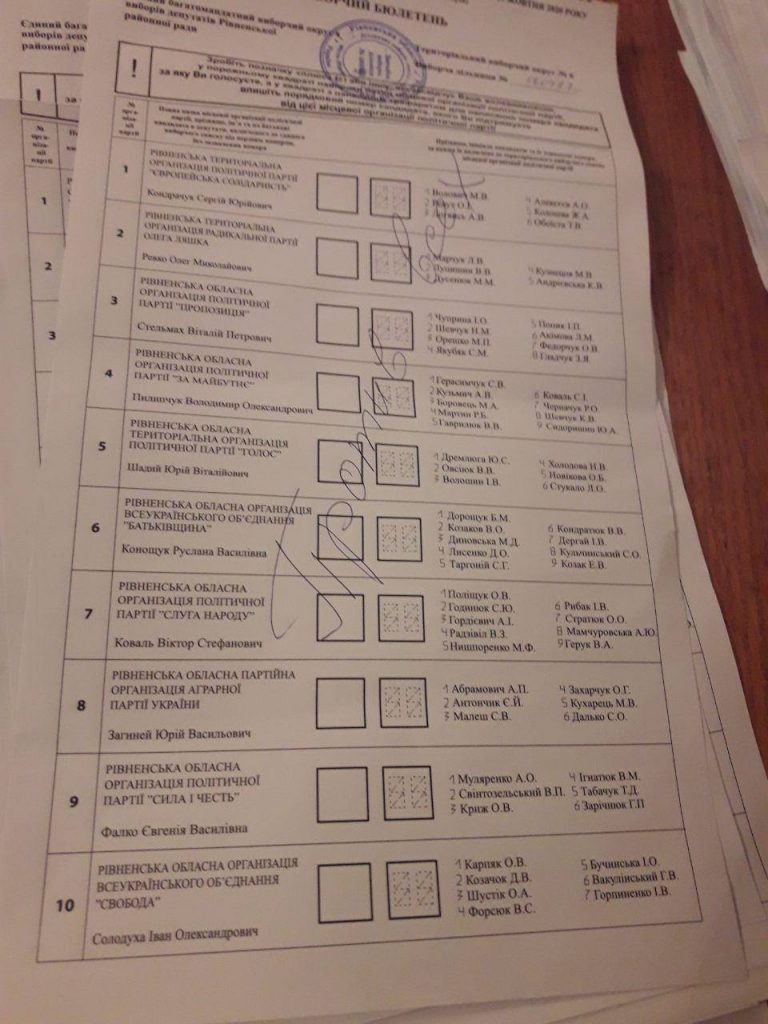 Один виборець написав «не вірю», інший про те що «всі проданці». Були й такі, що поставили галочки навпроти усіх політичних сил, внесених до бюлетеню. Дехто виставив навіть рейтинг партій – пронумерувавши їх за власною системою.