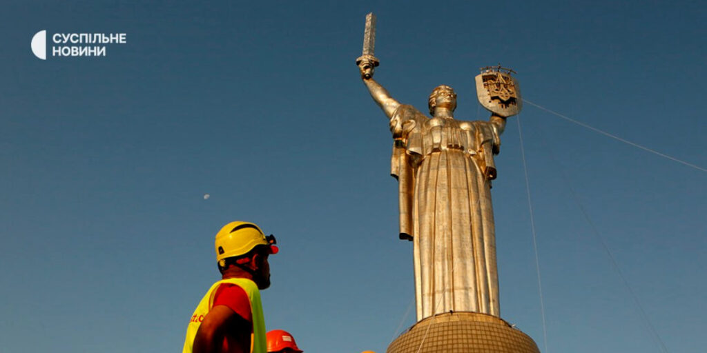 Вранці 6 серпня у парку Слави у Києві альпіністи закріпили тризуб на щит монумента “Батьківщина-мати”.