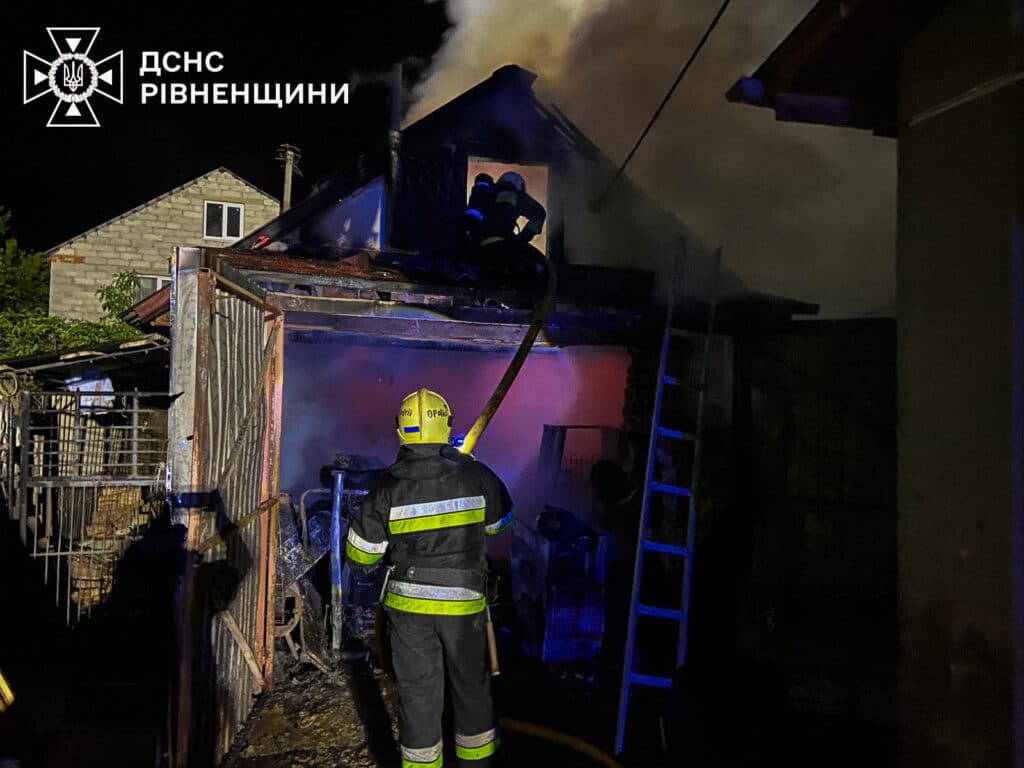 У ніч на 14 жовтня у селищі Млинів Дубенського району сталася пожежа на вулиці Княгині Ольги. Повідомлення про загоряння господарської будівлі надійшло до Служби порятунку «101» о 02:39.