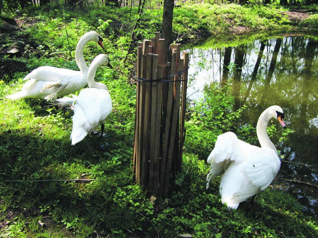 – Зателефонував Богдан Юрійович і питає: чи не хочете взяти на виховання пару лебедів, – повідав Володимир Климчук. – Виявилося, що здорові подалися у вир, а двоє з покаліченими крилами залишилися на місцевому ставку. Отож, зловили їх, забрали на зиму, прогодували. Лебеді й оселилися на озерці підприємства.