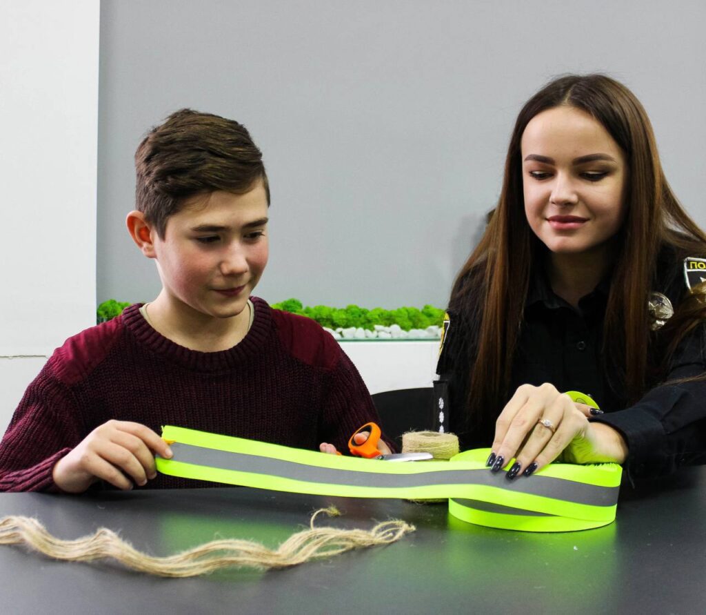 Юні майстри виконали всі вказівки поліцейських та вже через пів години світловідбиваючі “вироби” були готові.