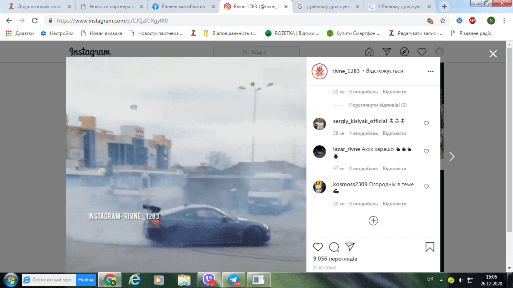 Відео, де чорний легковик дрифтує біля припаркованих маршруток розмістили в інстаграмі в групі RIVNE-1283.