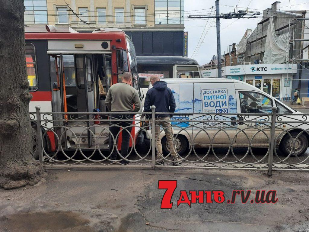 Водій тролейбуса не дотримався дистанції і допустив зіткнення з автомобілем, що доставляє питну воду.