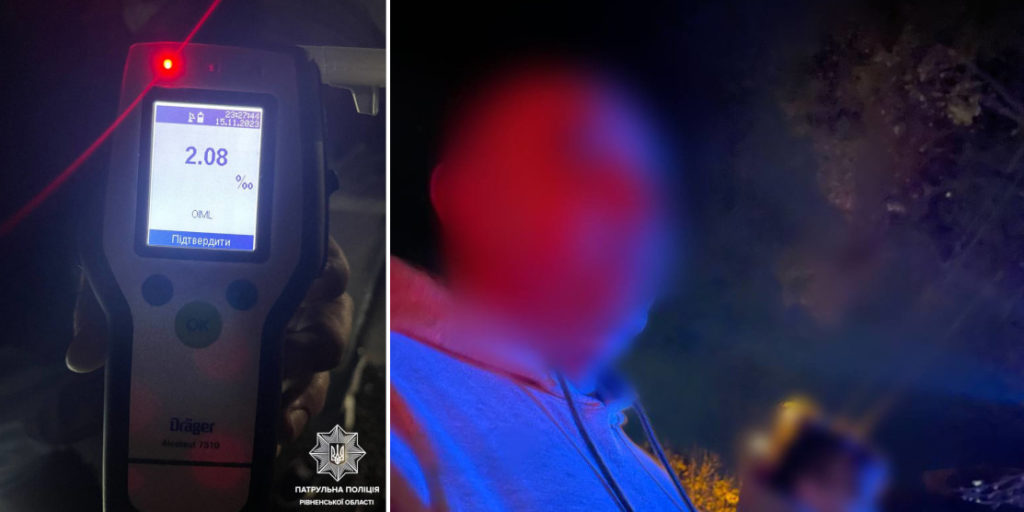 Водій погодився пройти огляд у встановленому законом порядку. Результат приладу драгер — 2,08 проміле.