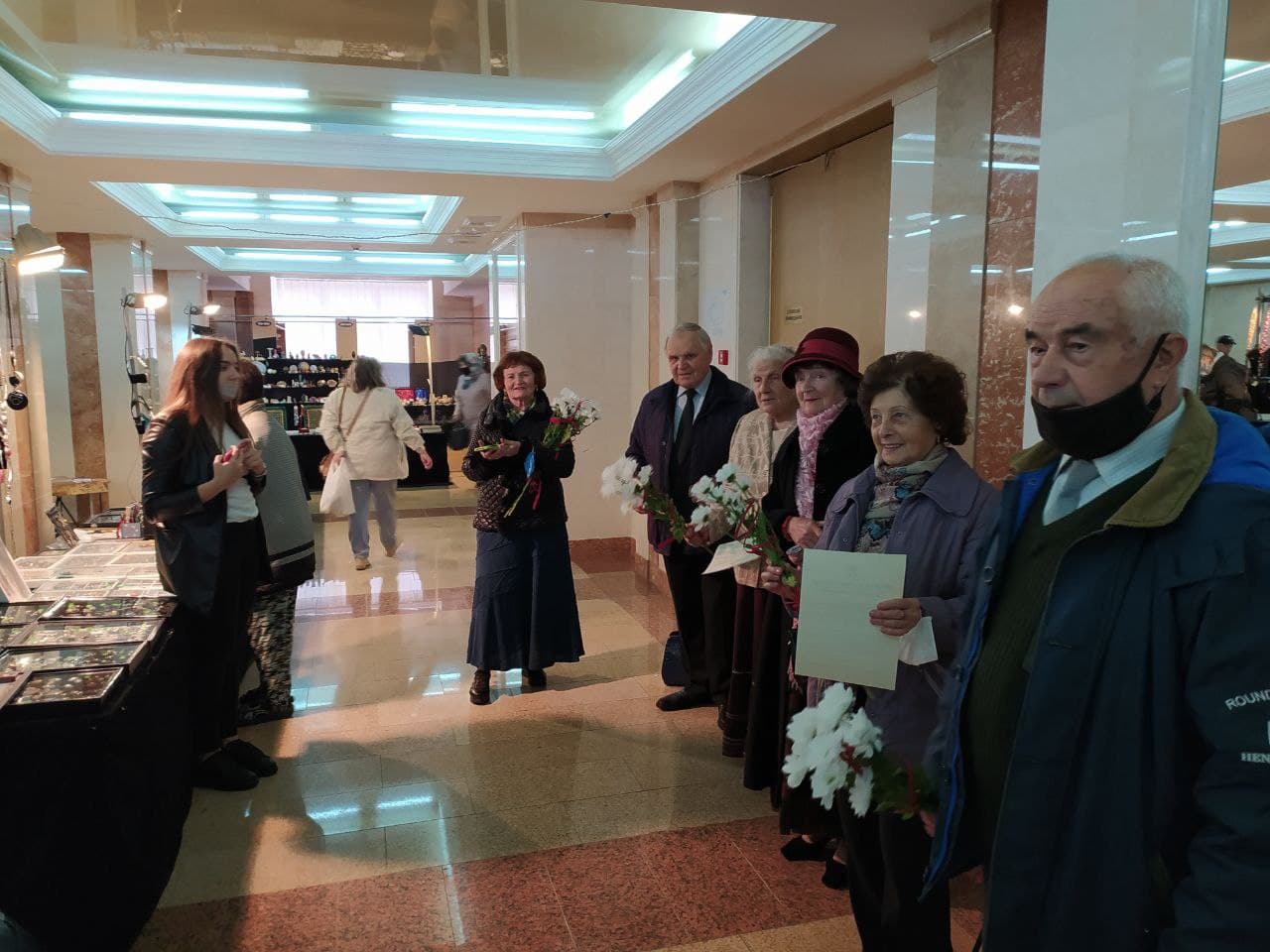 Перед початком концерту заступник міського голови Рівного Олександр МИРОНЮК вручив шістьом найактивнішим членам міської ветеранської організації вітальні листівки міського голови, а ще переказали їм на пенсійні рахунки по 400 гривень матеріального заохочення. А от Олена Козицька отримала з рук голови Організації ветеранів м. Рівного Іван БОРОВИК Почесну грамоту і нагрудний значок Рівненської облради.