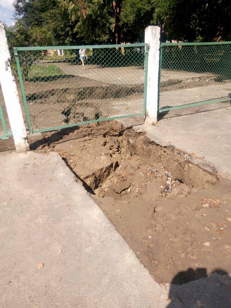 Нічна злива наробила біди біля воріт 24-ї школи – утворилася яма.