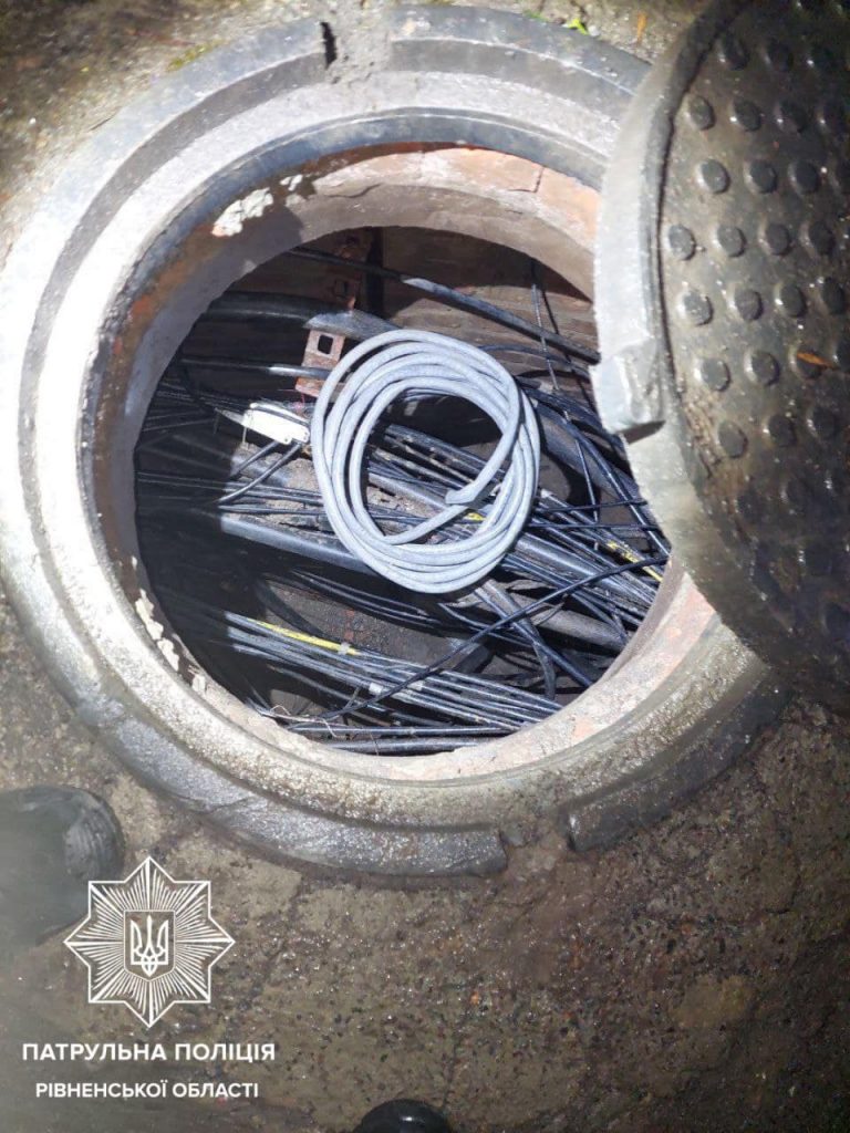 На прилеглій території поліцейські виявили вирізаний кабель довжиною 45 метрів.