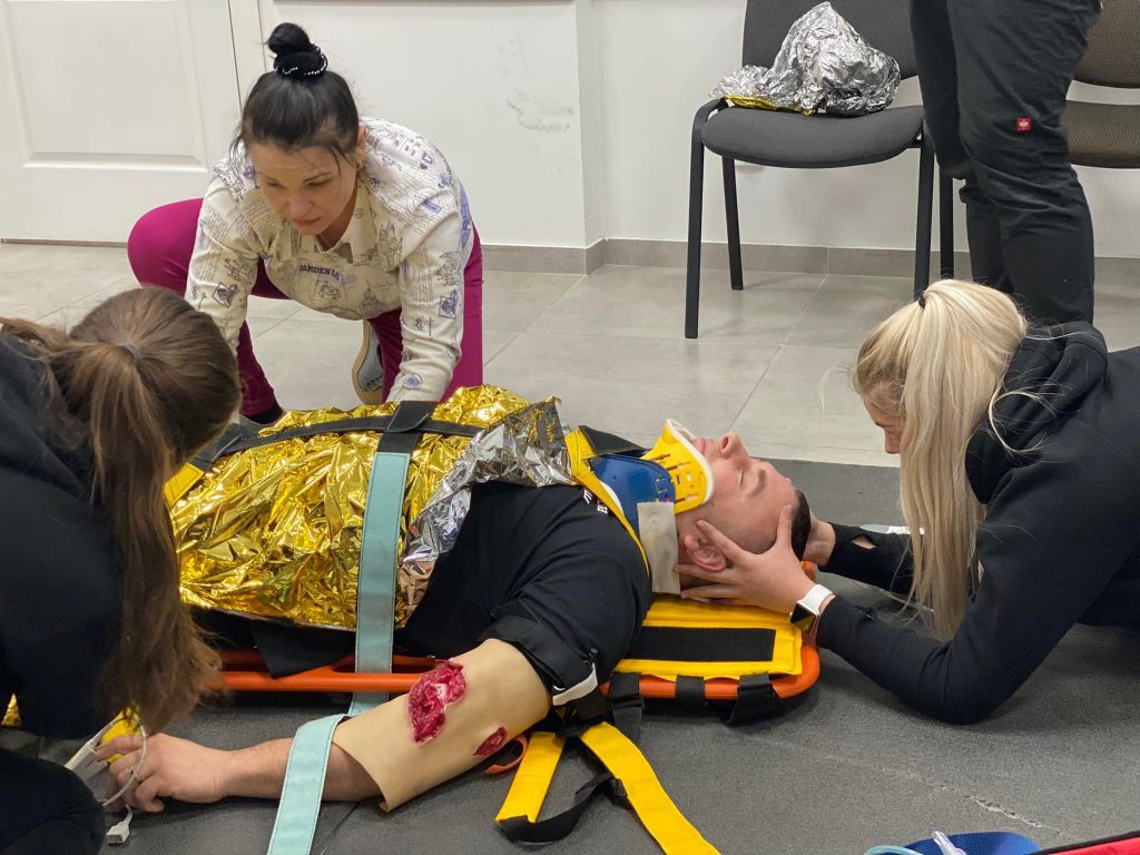«Цінність курсу полягає в тому, що багато часу приділяється практичній частині. Також під час для проведення симуляцій жорсткий «таймінг» – 10 хв. За цей проміжок всі учасники мають виявити, що сталося з пацієнтом, чи він критичний, оглянути його, надати допомогу і занести в автомобіль швидкої допомоги. Симуляції різні: падіння з висоти, ДТП, бійки та інше», – зазначив інструктор НТВ Олександр Чередарик.