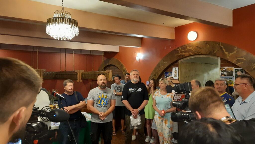 Сьогодні в Рівному відбулося спецпогашення поштової марки та спецконверта “Святий Миколай захищає Миколаїв”, виконаної за ескізом відомого рівненського митця, музиканта і карикатуриста Юрія Журавля. Його провели в цокольному приміщенні органного залу під час відкриття виставки політичних та антивоєнних карикатур відбувається в рамках міжнародного конкурсу під гаслом «Русскій воєнний корабель….!»