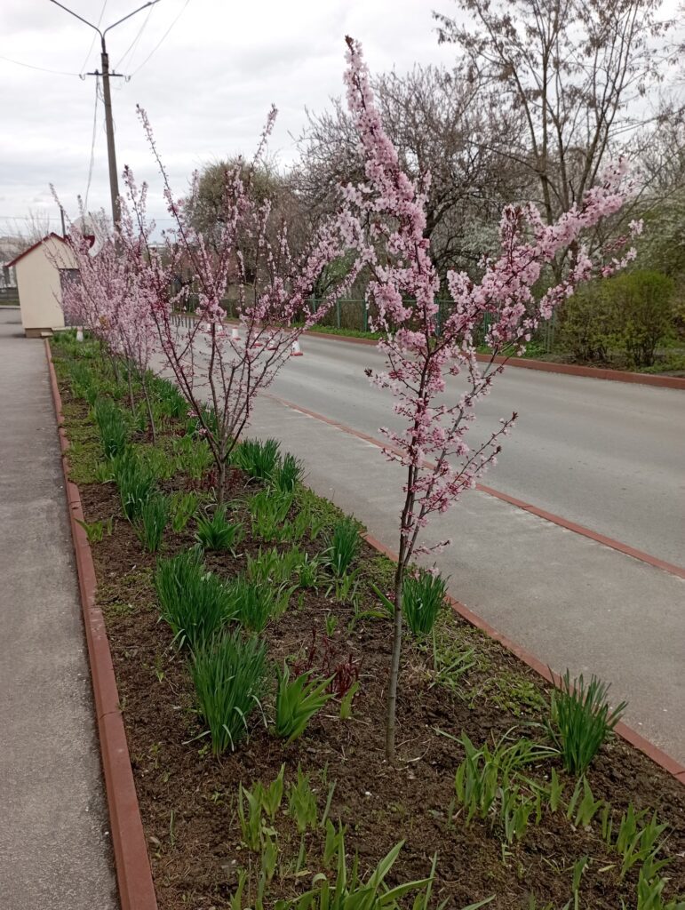Хоча деревця ще невеличкі, але радують буйним цвітом. Незабаром ця квітуча алея може стати популярною фотозоною у Рівному.