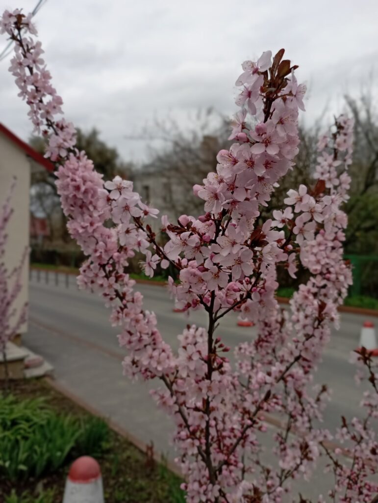 Сакури розцвіли на вулиці Карнаухова в обласному центрі біля міської лікарні.