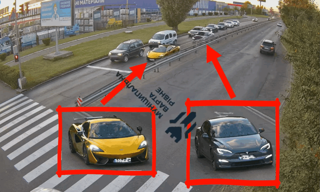 У Рівному на вулицях міста помітили небезпечні перегони за участі автомобіля Tesla та спорткара McLaren 570S.