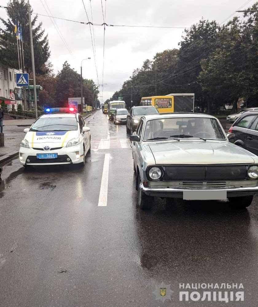 А вже через пів години на вулиці Соломії Крушельницької сталася автопригода за участю пішохода. Водій автомобіля «ГАЗ 24», 63–річний рівнянин, допустив наїзд на 35-річну жительку обласного центру, яка перетинала проїзну частину по нерегульованому пішохідному переході. Внаслідок ДТП потерпілу госпіталізували до Рівненської ЦМЛ із закритою черепно-мозковою травмою та переломом кісток колінного суглоба.