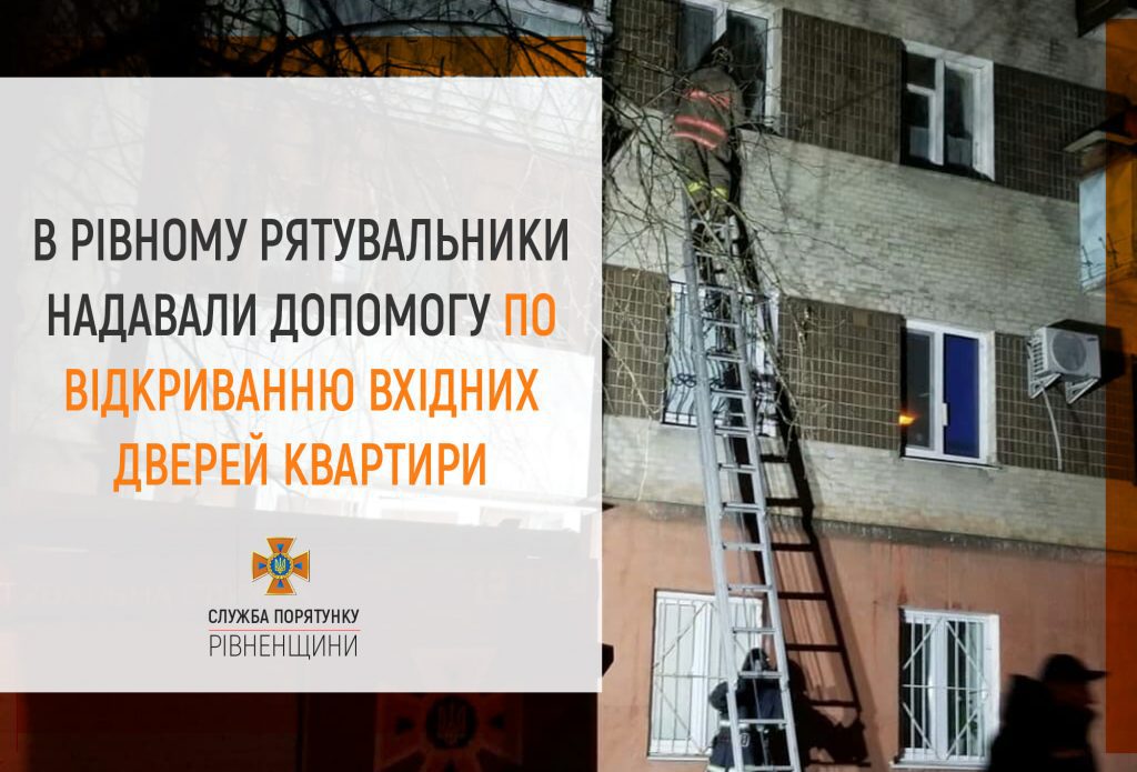 4 січня о 21-43 рятувальники надавали допомогу по відкриванню вхідних дверей квартири у м Рівне по вул. кн. Ольги, 29. У помешканні знаходилася важкохвора господарка, 1933 року народження.