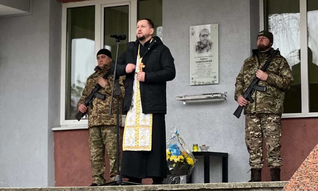 Меморіальну дошку на честь загиблого Героя Тараса Замлинного відкрили на фасаді Рівненського ліцею №2 29 листопада.