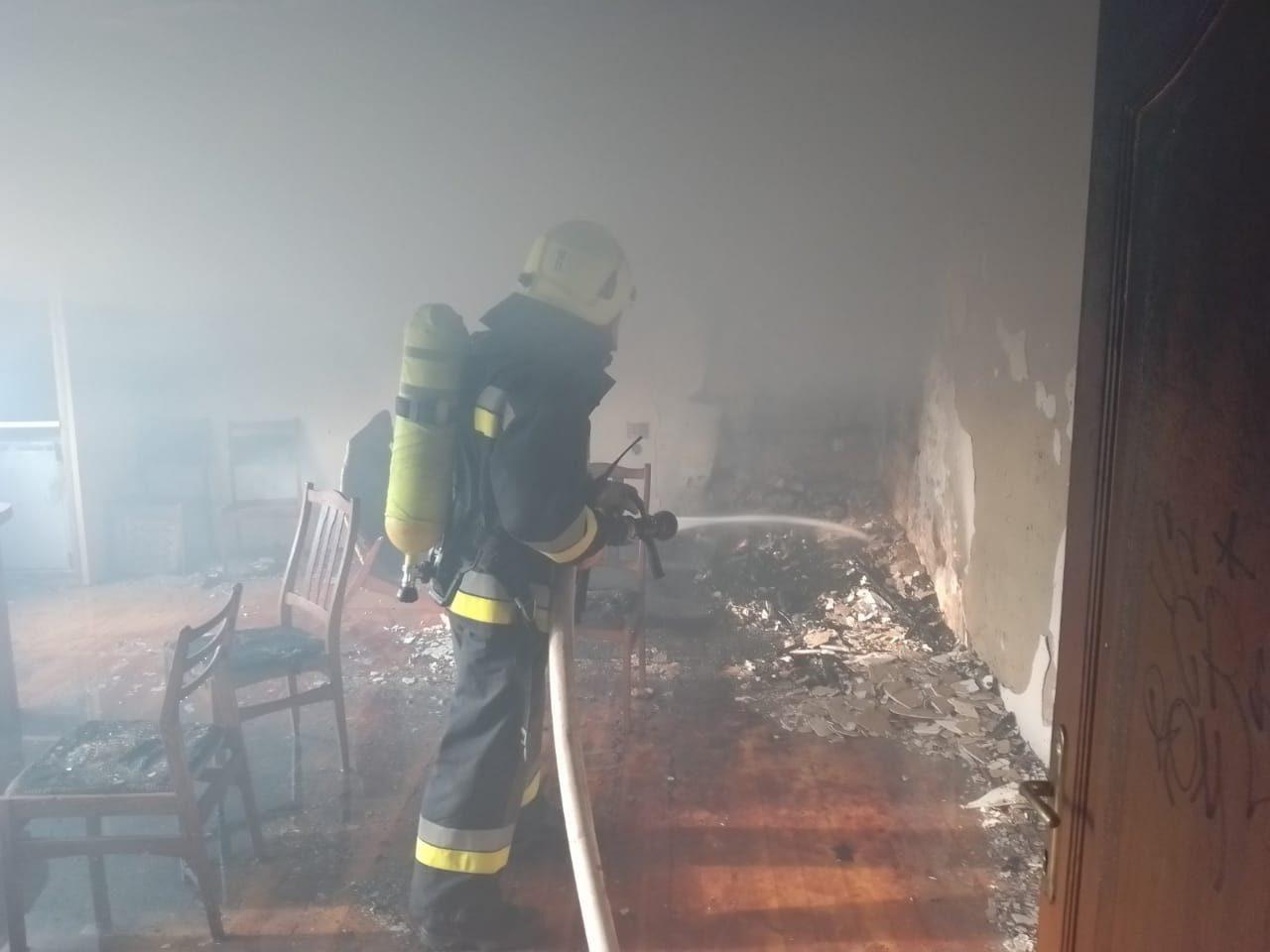 О 18-52 у м. Здолбунів вул. С. Бандери Рівненського району. Вогнем пошкоджено меблі, стіни в кабінеті на другому поверсі адміністративної неексплуатуючої будівлі Здолбунівської санепідемстанції. Причина та збитки встановлюються.