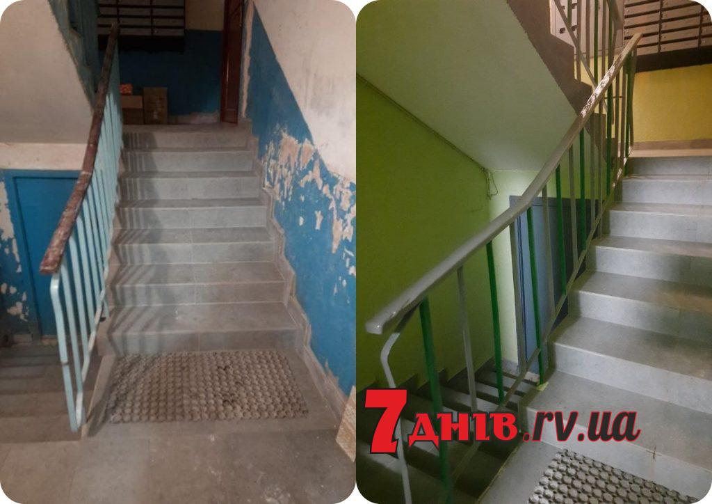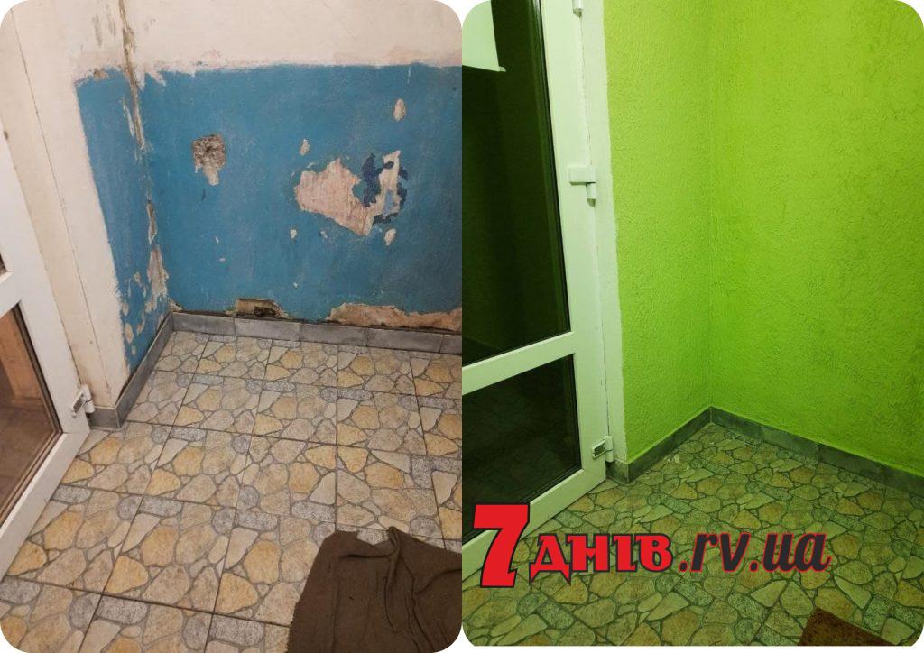 Гарний та практичний ремонт за кошти ОСББ зробили мешканці 1-го під’їзду будинку №8 по вулиці Шухевича у Рівному, по-справжньому перетворивши за два місяці стандартне приміщення панельної багатоповерхівки у помешкання, в яке приємно заходити.