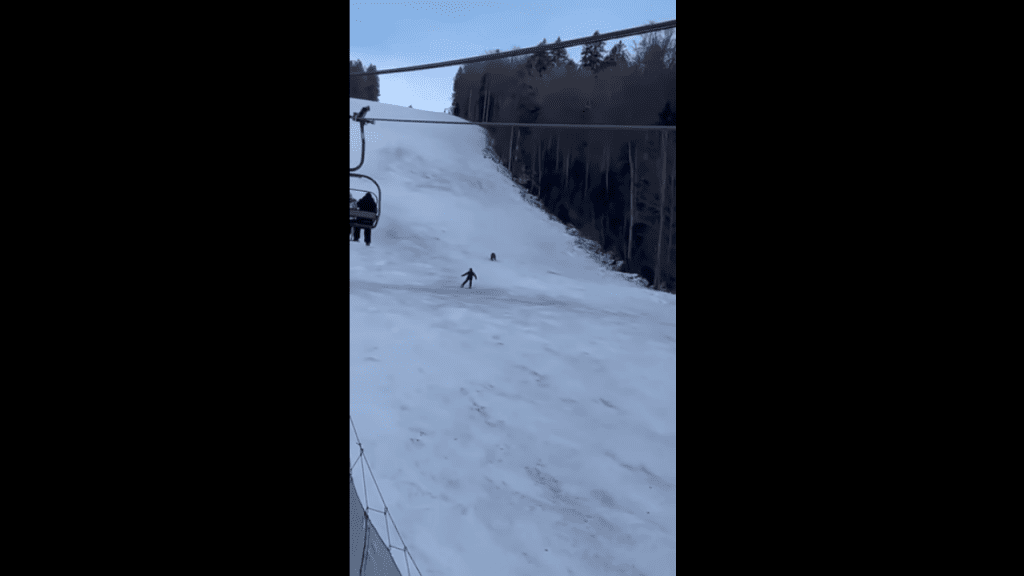Тварину помітили люди, які знаходились у крісельному підйомнику. Вони почали кричати, щоб попередити лижника.