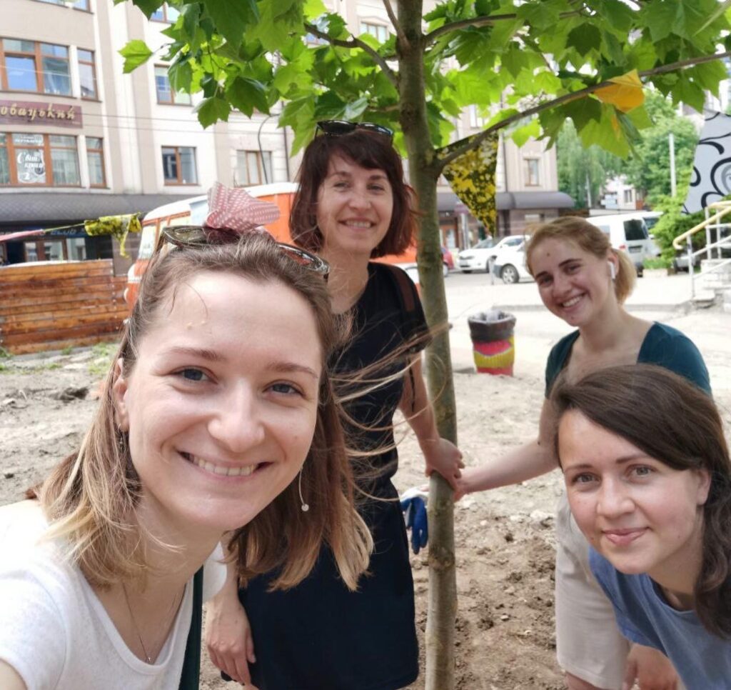 Невеличку територію поруч із приміщенням колишнього паспортного столу спочатку очисли від сміття, а згодом висадили кущі та дорослі дерева (платанів).