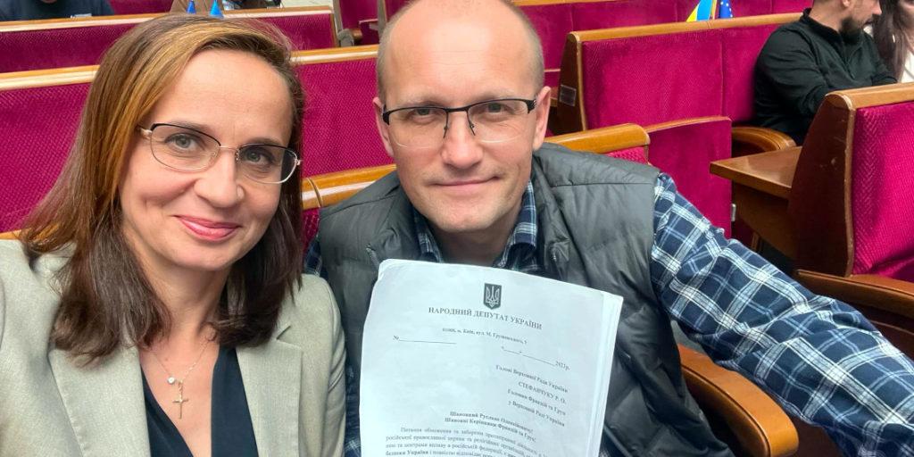 На фото народні депутати Юлія Клименко й Олександр Аліксійчук зі зверненням до голови ВР (фото Юлії Клименко).