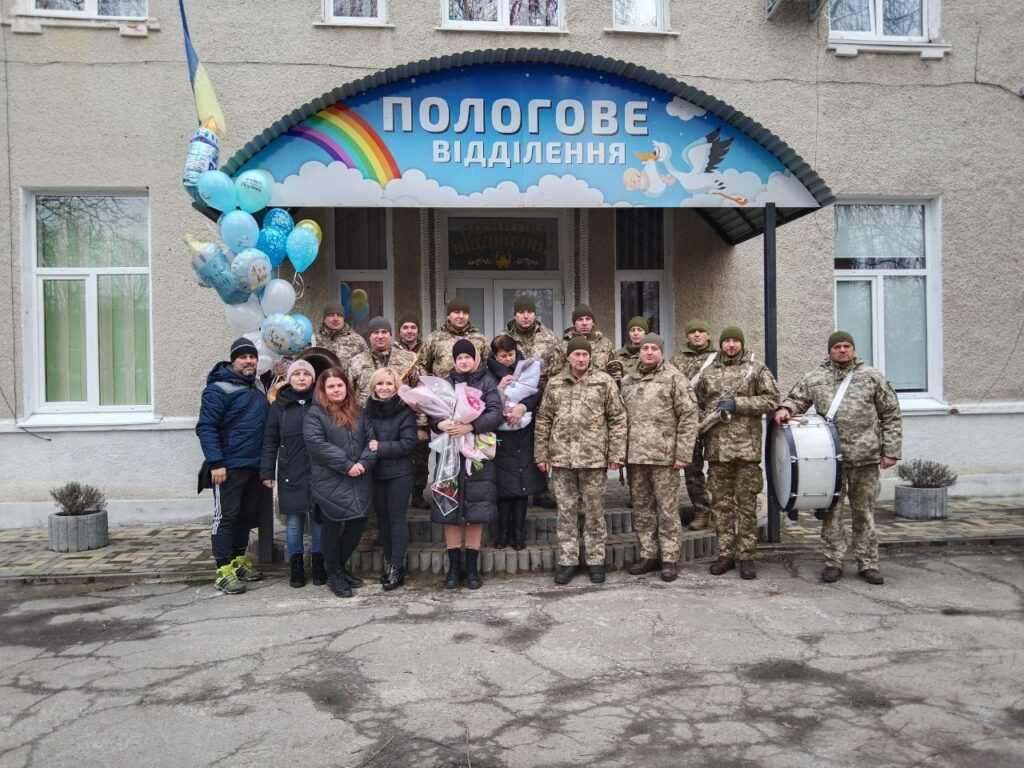 Зустрічати породіллю біля пологового відділення прийшли найближчі родичі, друзі, волонтери, побратими та військовослужбовці з вітаннями, квітами й кульками.