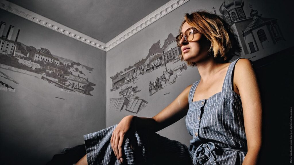 «Моєю ідеєю було зобразити це як марення, наче невловимий спогад. Тому я і використала таку кольорову гаму, наче воно на хвилину виринуло зі спогадів сторінок історії міста, щоб наступної миті знову зникнути», – розповіла авторка розписів Софія Корнійчук