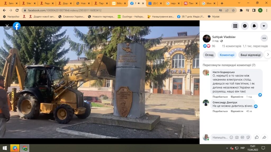 Сьогодні його було демонтовано. Як це відбувалося показав міський голова Здолбунова Владислав Сухляк, який розмістив відповідне відео на своїй сторінці у Фейсбуці.