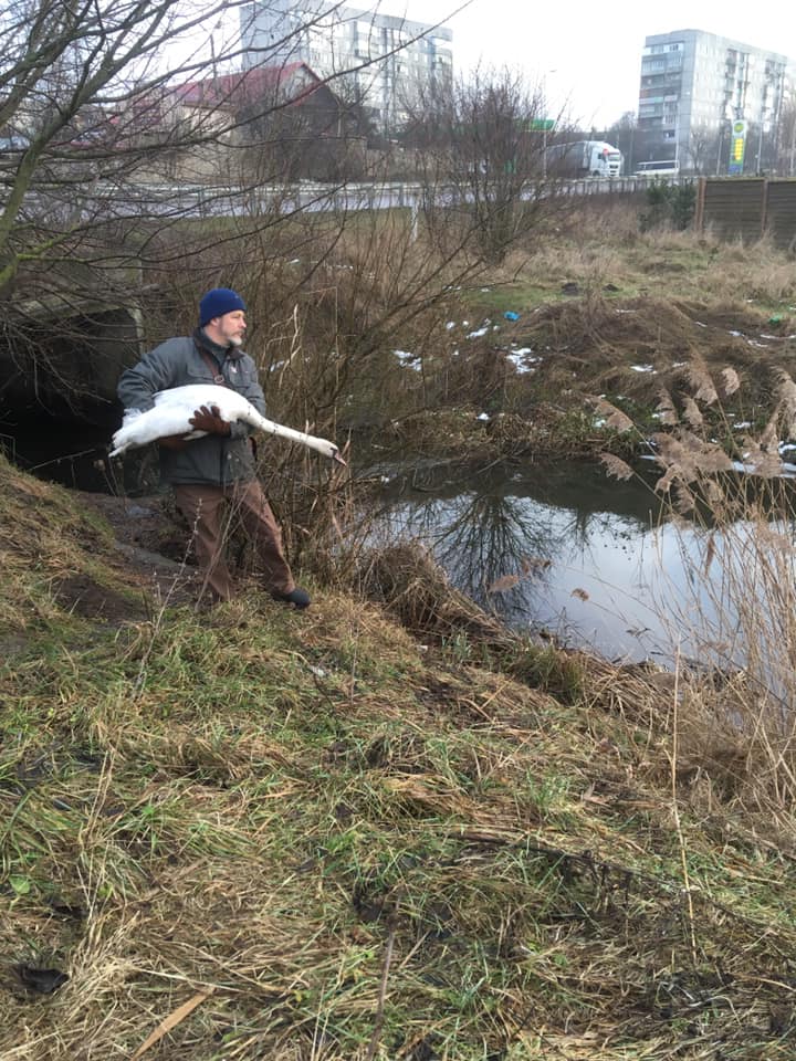 Морозні дні лебідь провів у господарстві здолбунівчанина Андрія Кардаша. Вчора цей чоловік випустив птаха на волю.