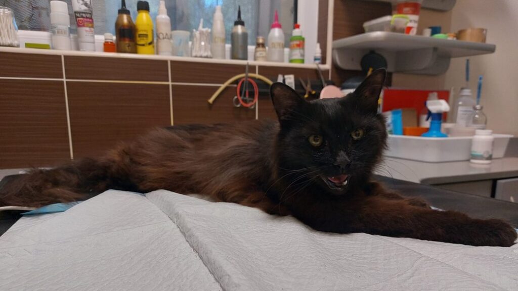 Тварину передали власниці та вже оглянули ветеринари. У котика виявили зневоднення, він був дуже втомлений, проте у нього вже є апетит.