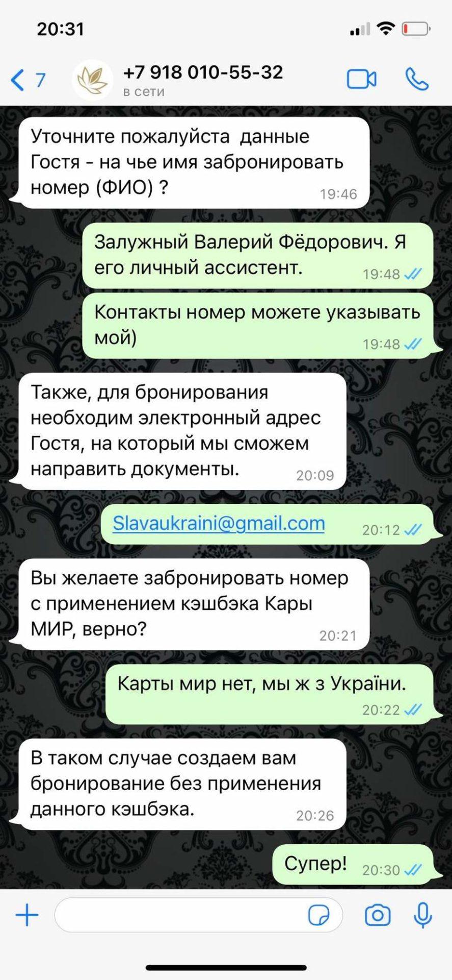 Залужному забронювали номер у готелі «Ялта» на 14 жовтня для перегляду переможного салюту