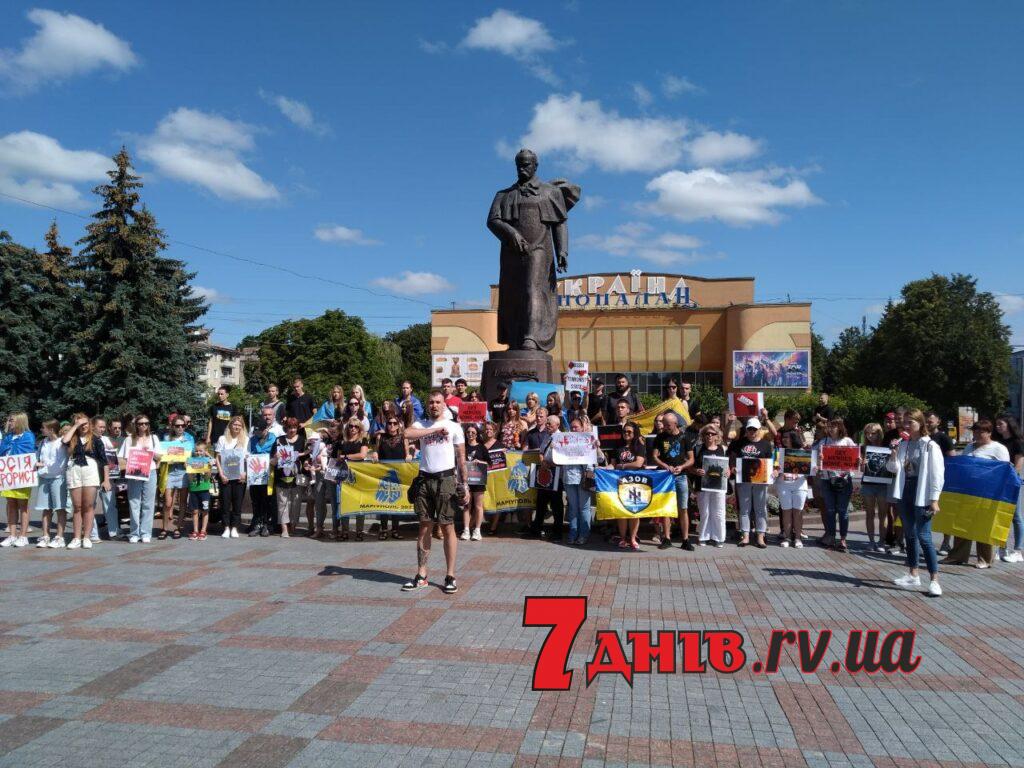 Учасники мітингу – звичайні рівняни, рідні та близькі українських військових. Розповідають, що на публічну акцію зважилися після страшних подій в Оленівці на Донеччині, де 29 липня внаслідок теракту армії рф було підірвано і згоріло одне з приміщень, в якому утримували українських військовополонених, зокрема і захисників Азовсталі. Загинули близько 40 людей, ще 130 зазнали поранень. У полку “Азов” російський удар по Оленівці розцінюють, “як акт публічної страти”.