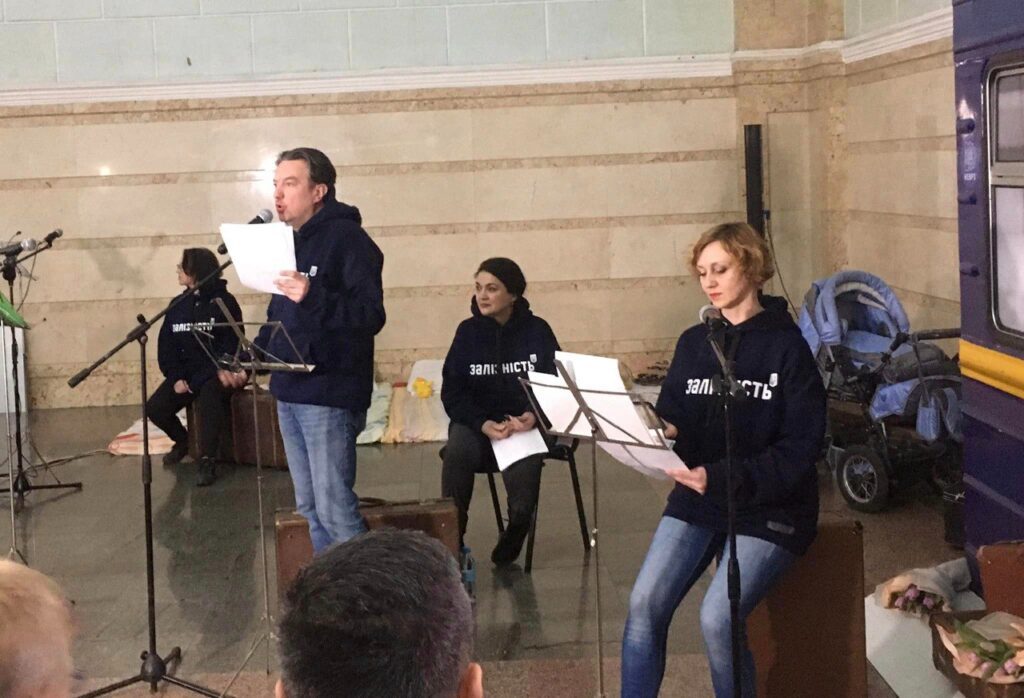 Сценою стала зала очікування, у якій тепер мало пасажирів. Але глядачів не бракувало. Народні артистки Римма Зюбіна, Наталія Сумська читали історії про героїчних залізничників, які у перші дні великої війни рятували людей й допомагали їм виїхати. Історії реальні, які записав і видав поет Andriy Permyakov. Він також їх читав.